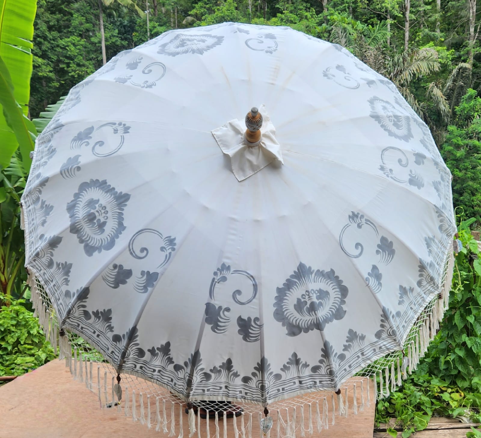 SWEET CRÈME FULL SILVER PAINTING FRINGES PARASOL